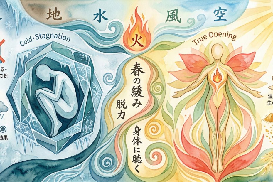 暦のうえでは春を迎え、自然界は「閉じる」冬から「開く」春へと、ダイナミックな変容の時期を迎えています。しかし、私たちの身体はまだ冬… 春の不調は「内なる氷」が溶け出すサイン。冷えを去り、心身をUnfoldingする養生法