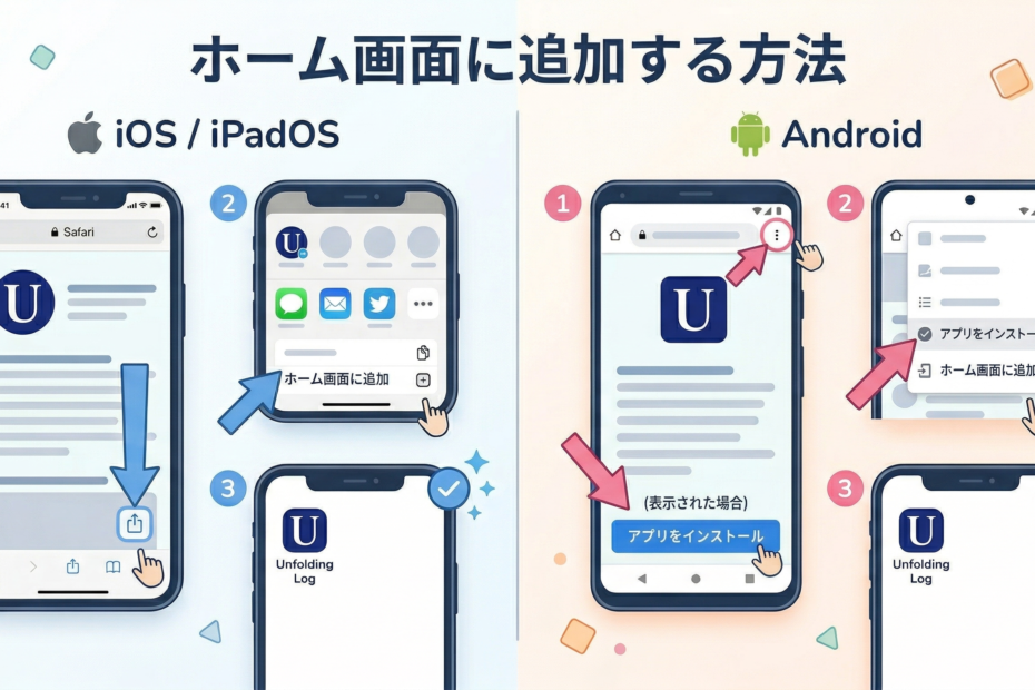 「アプリを使い始めたいけれど、どうやって入れるの?」というお声をいただきました。 Unfolding Logは、スマホの容量を…